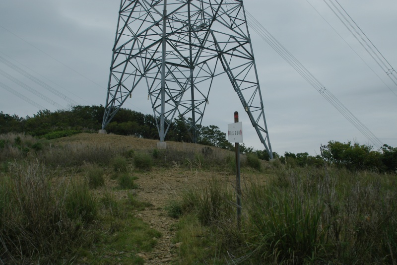 やがて突然広い草原に出ます。一本目の鉄塔です。ほんの少しで二本目、そこが冷川谷の頭の頂です。