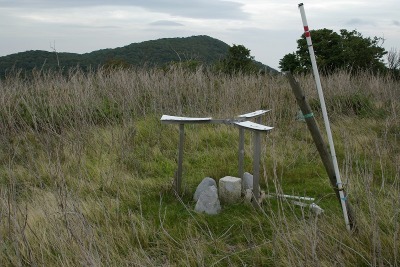 1/25000地形図に標高1054mの標高点がある荷ヶ岳の山頂です。山頂といってもこの立て札がないと