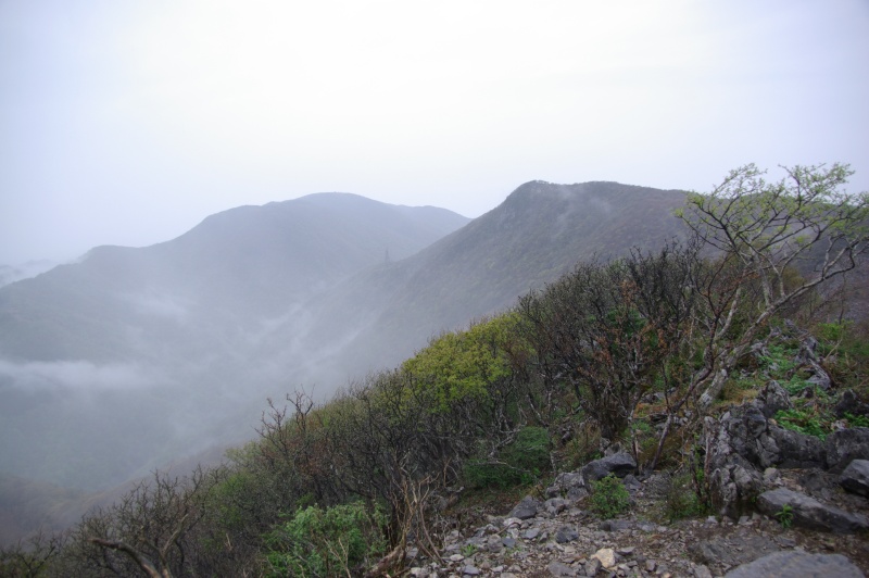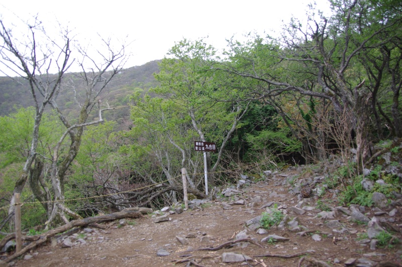 山行記録:日時−2009年5月5日、天候−くもりのち雨。10:55 地図Pあたりの駐車場に駐車後、11:10 大貝戸道登山口@、12:14 5合目着。ここで昼食。雨が降り始める。13:10