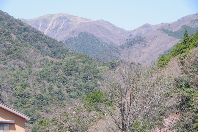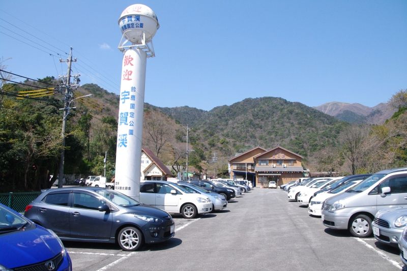 国道421号線から宇賀渓分岐を入ってすぐ、駐車場があります。駐車場からすでに竜ヶ岳(右奥)の山頂部が見えています。