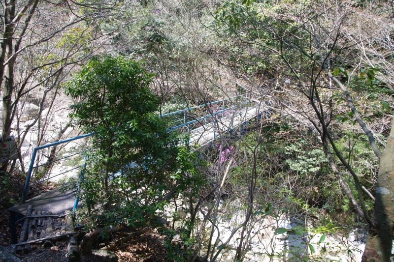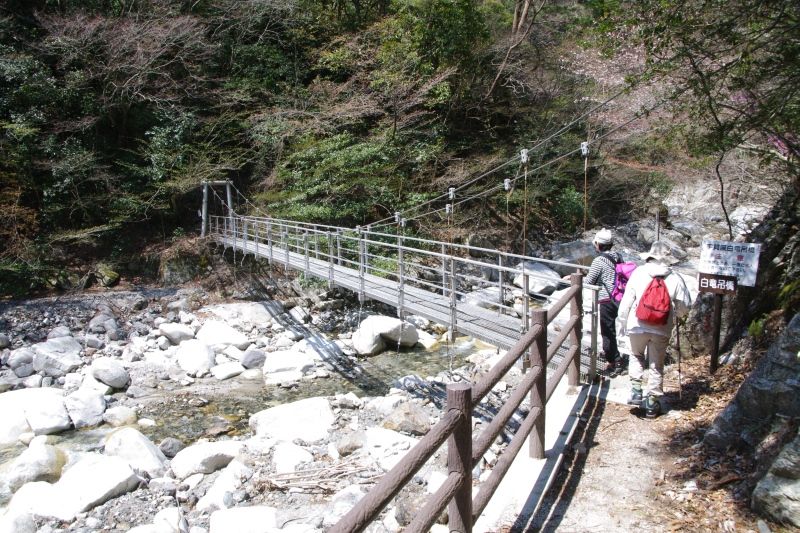 林道の終点からすぐ前のきれいな吊橋を渡ります。白竜吊橋です。右岸に渡ります。