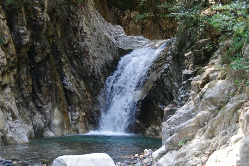 やがて、右から小谷が流れ込むところで、連続して落ちてくる滝と出会います。五階滝です。