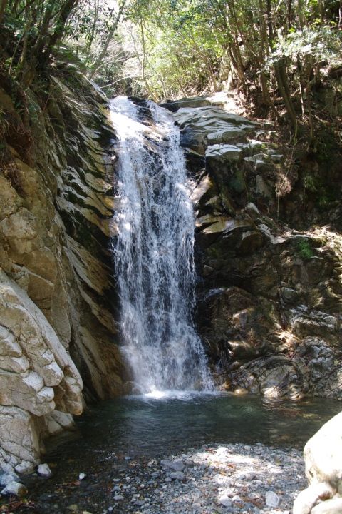 やがて、今日のルートで最後の、そして一番お目当ての長尾滝が見えてきました。そして右側の涸谷がそのあとのルートです。