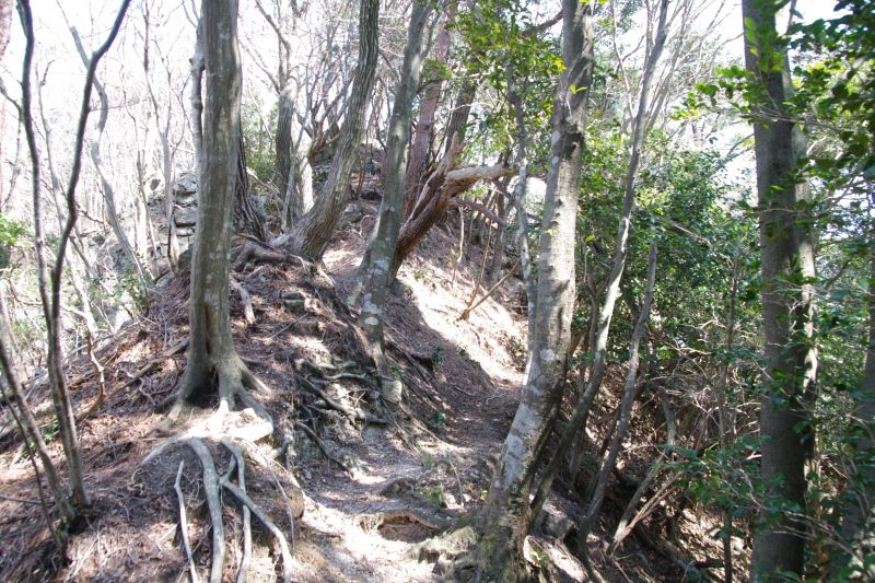 ようやく水音から離れ、山に入っていきます。溝道の急登を登ります。