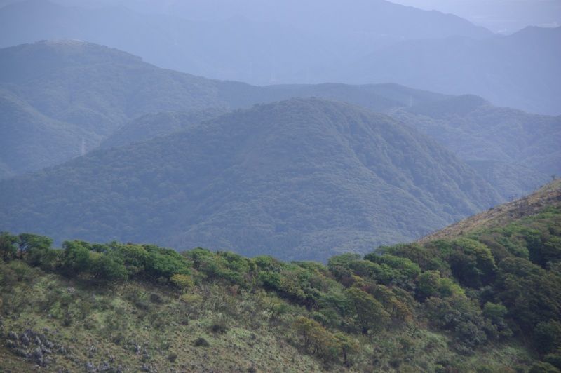 鈴鹿山脈のほぼ最北端に位置する霊仙山(りょうぜんざん)は、山東〜関ヶ原の盆地を隔てて、伊吹山と対峙する位置にあります。伊吹山や御池岳と同様に石灰質の山なので、山頂部は高原状の台地で、緩やかな起伏の草原上にいくつかの峰が並んでいます。そこから、比較的急峻な尾根が四方に派生しています。山頂台地上は、笹の大草原で、ここからの眺望は素晴らしいものがあります。奈良時代にはこの山頂部に泰澄開基の霊仙寺という大寺院が建ち、のちに中国で三蔵となった霊仙三蔵というえらいお坊さんがいたそうです。今は、山頂部でその痕跡すら見ることはできません。なお霊仙山の標高には一般に三角点の1083.5mが用いられていますが、最高点は少し東のポイントで1094mあります。
