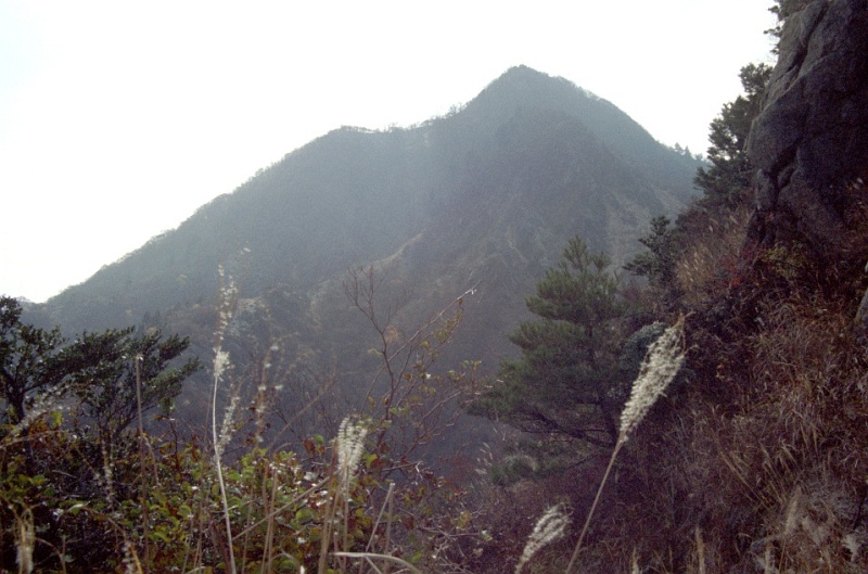 2004年11月、御在所岳と国見岳に登った翌朝、まだ午前中だけ時間があったので、武平峠からピストンで鎌ヶ岳1161mに登りました。4年前の10月に来たときより三ツ口谷上部の紅葉が色づき、きれいでした。ほんの二時間半ほどの山行でしたが、眺望、紅葉、アルペンムードなど楽しめるルートです。