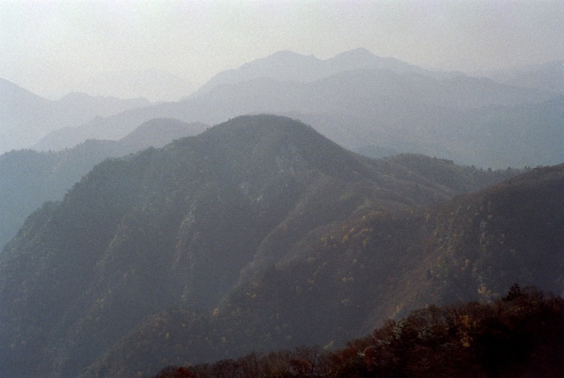 山行記録:日時−2004年11月7日、天候−晴れ。9:10 鈴鹿スカイライン武平トンネル滋賀県側5分ほどに駐車、9:15