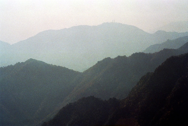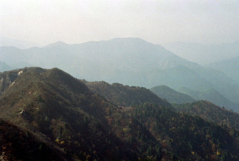 仙ヶ岳の右側の望遠版。手前に鎌尾根、その向こう中央が高円山945mです。