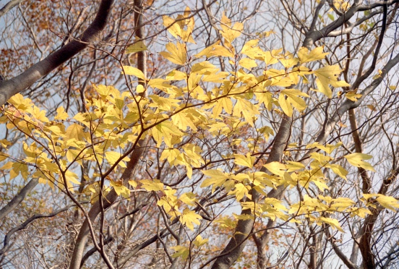 紅葉といってもここでは黄色の葉が主役です。上二枚は三ツ口上部の紅葉、下は登山道沿いの黄色い葉です。