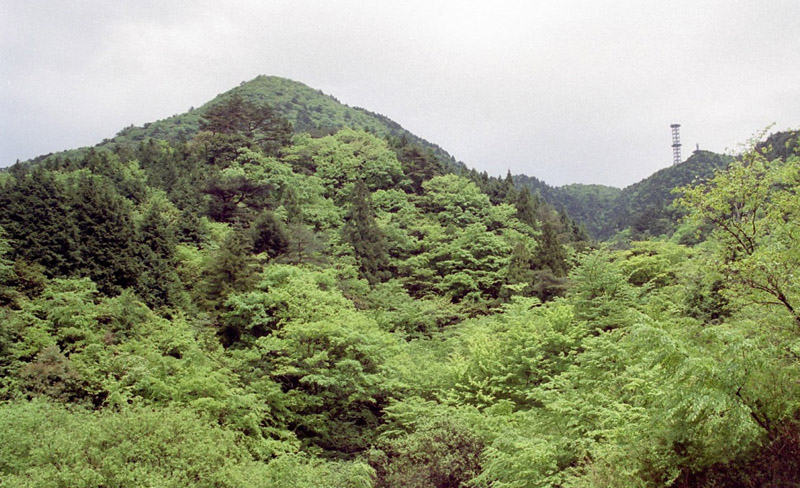 左手に高円山(945m)のきれいな形が見えてきます。その右には電波塔の峰。