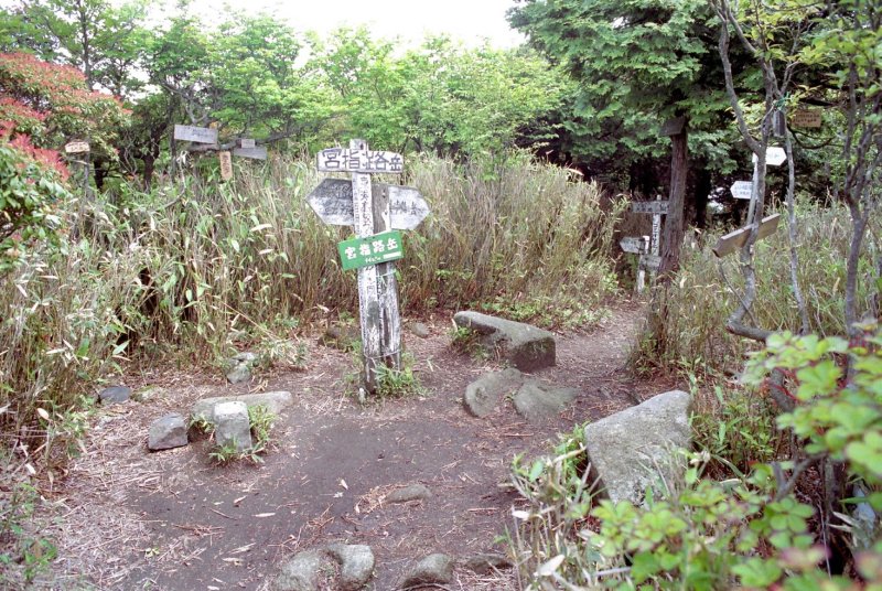 NTTの電波塔に向かいます。車は一切入れません。分岐点の立て札には「宮指路岳2.00h→」、「水沢岳2.30h←」と書かれています。
