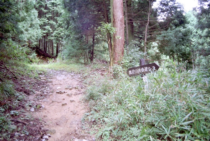 山行記録:日時−2004年9月26日、天候−曇り時々雨。12:00 東海自然歩道脇に車をとめて登山口@を出発、13:05