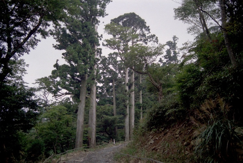やがて登山道は広くなり、尾根上を行きます。杉の並木がある風情のあるところに出ました。