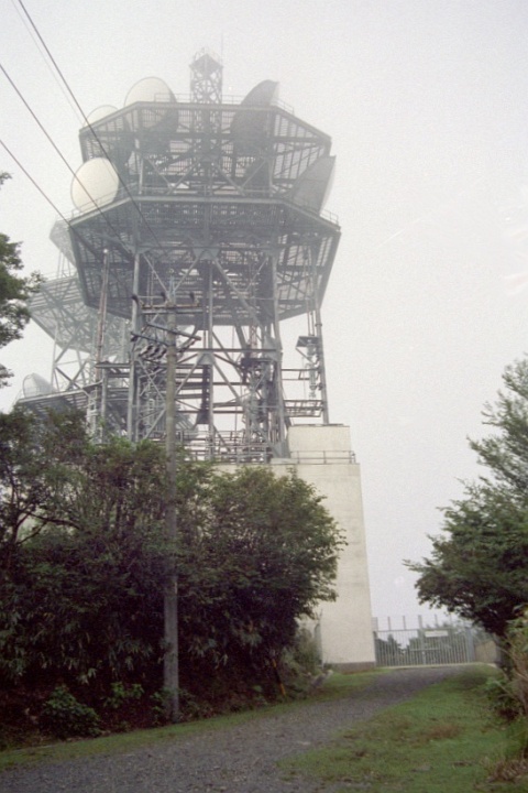 本堂の右脇を登ると、やがて林道に出ます。左手にはNTTの巨大で無粋な鉄塔。