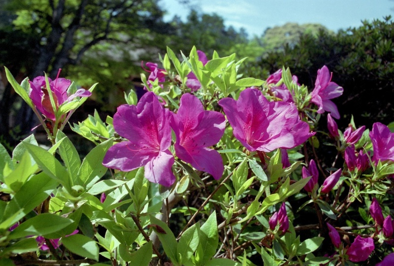 つつじ、ツツジ、躑躅・・・・・梅も桜も終わり、いよいよGWに入ろうかという頃、咲き始めるつつじの花。街では、園芸品種のヒラドツツジ、キリシマツツジ、サツキなどがあちこちの庭園や街路で大きな花を付けます。一方、山ではミツバツツジやヤマツツジ、ミヤマキリシマなど、これもまた素晴らしい花を見せてくれます。でも、ちょっと花飽きした時期のためなのか、桜のお花見ほど盛り上がらないのは、ちょっと気の毒なほど。日本の初夏を代表する、そしてよく晴れた青空に一番マッチする花だと思います。上の1〜9はすべて園芸種です。1〜5はヒラドツツジ系、6−7はキリシマツツジ系、8−10はサツキツツジ系の花です。11はレンゲツツジのようにオレンジ色の園芸種。自生(天然)のつつじは下からお入りください。12〜15は札幌の街で見かけたつつじです。なぜか、ほかの街より色のバリエーションに富んでる気がしました。