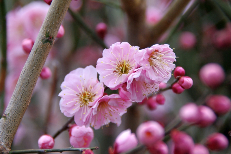15以降は、三重県にある「鈴鹿の森庭園」で撮影したしだれ梅をはじめとする梅の花です。ここのしだれ梅は、日本最古・最大の株を含む、壮大なもので、そのほかの品種もたくさん栽培されている庭園です。一見の価値があります。